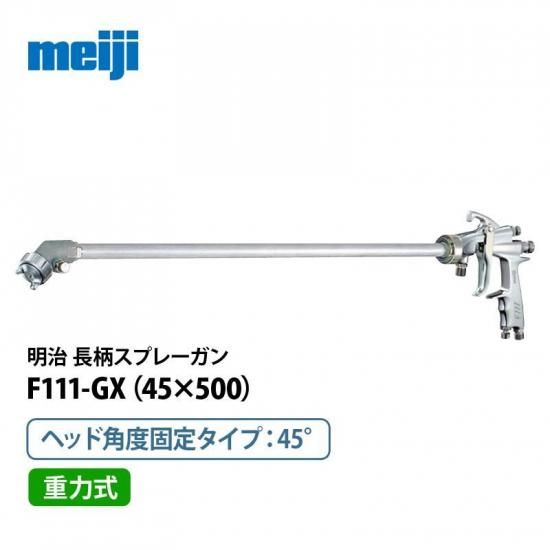 明治 ヘッド固定式長柄ハンドスプレーガン 【F111-GX15(45×500)】 重力式/ヘッド角度45°/管長500mm(F110 後継)