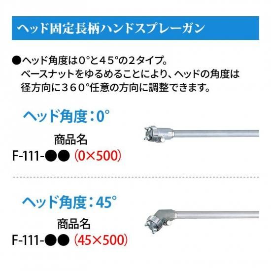 ▽ヘッド固定式長柄ハンドスプレーガン F111-GX15(ヘッド角度45°/重力式/管長500mm)