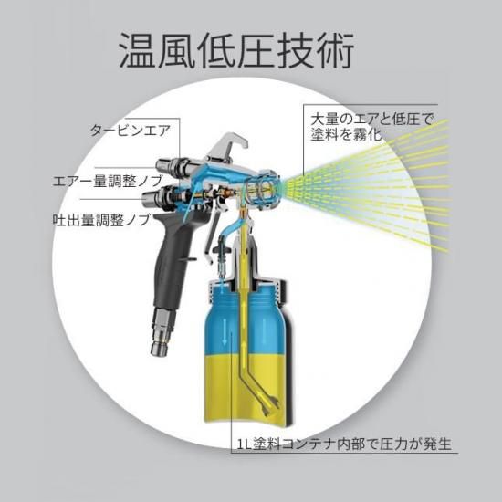 ・耐溶剤のHVLPガンを搭載し、一般的な水系・溶剤系塗料を扱えます。