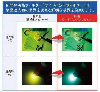 機能充実!『ワイドバンドフィルター』搭載で新登場!!新開発液晶採用で鮮明な視界を確保!