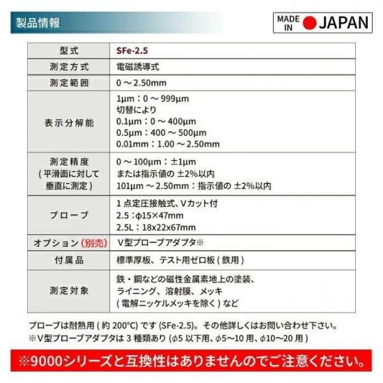 ※1.プローブは耐熱用 (約200℃) です (SFe-2.5)。その他詳しくはお問い合わせ下さい。