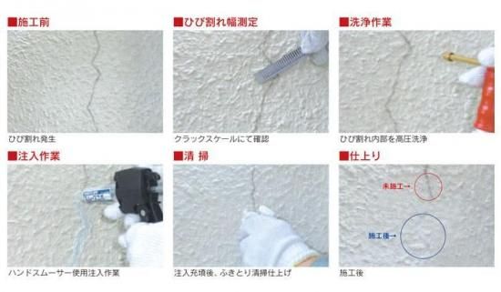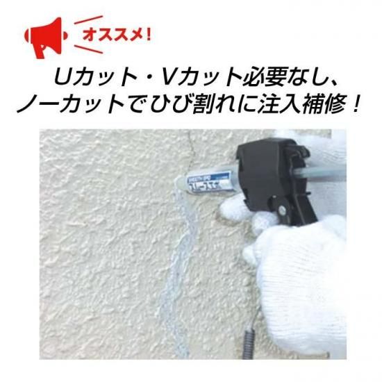 Uカット・Vカット必要なし、ノーカットでひび割れに注入補修。