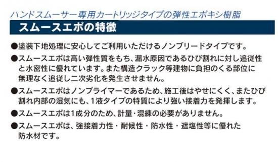 ・スムースエポは、強接着力性・耐候性・防水性・遮塩性等に優れた防水材